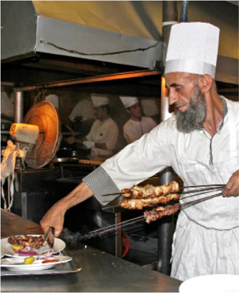 Juicy, spiced kebabs sizzling over open flames, bringing families together for celebratory meals after morning prayers.